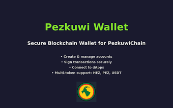 Pezkuwi Wallet, PezkuwiChain ağı için resmi bir tarayıcı eklentisidir. Bu ücretsiz araç, kullanıcıların Pezkuwi hesaplarını dapps dışında yönetmelerine olanak tanır. Kullanıcılar, belirli bir hesap için işlemleri imzalamak ve hesapları kolayca enjekte etmek için bu eklentiyi kullanabilirler. Özellikle blockchain uygulamalarında kullanıcı deneyimini geliştirmek için tasarlanmıştır.